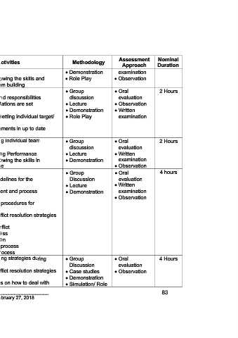 2.4. Supervise team Discuss listening and treating individual team Group Oral 2 Hours