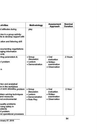Competency Outcomes Learning Activities Methodology Approach Duration