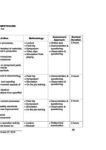1. Apply Quality 1.1. Assess quality of Identify relevant production processes, Lecture Written test 3 hours