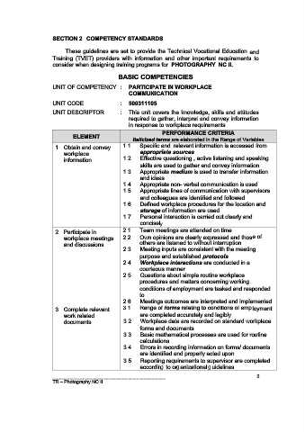 UNIT OF COMPETENCY : PARTICIPATE IN WORKPLACE