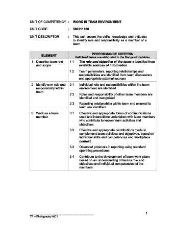 UNIT OF COMPETENCY : WORK IN TEAM ENVIRONMENT