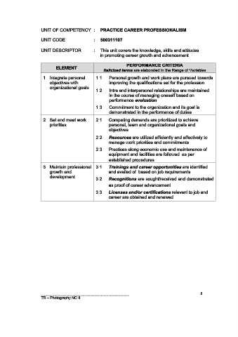 UNIT OF COMPETENCY : PRACTICE CAREER PROFESSIONALISM