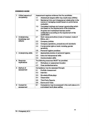 6. Context for 6.1 Competency may be assessed in the work place or in