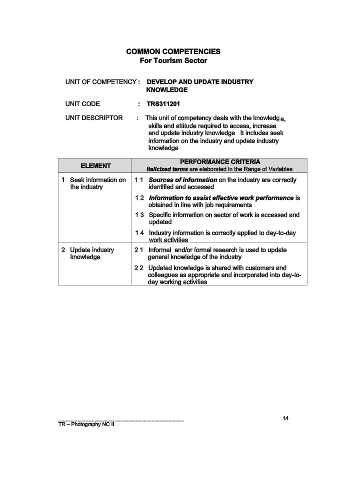 UNIT OF COMPETENCY : DEVELOP AND UPDATE INDUSTRY