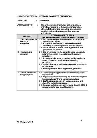 UNIT OF COMPETENCY: PERFORM COMPUTER OPERATIONS
