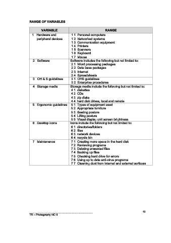 5. Ergonomic guidelines 5.1 Types of equipment used