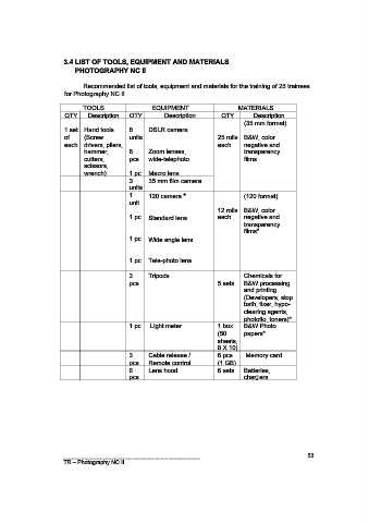 3.4 LIST OF TOOLS, EQUIPMENT AND MATERIALS