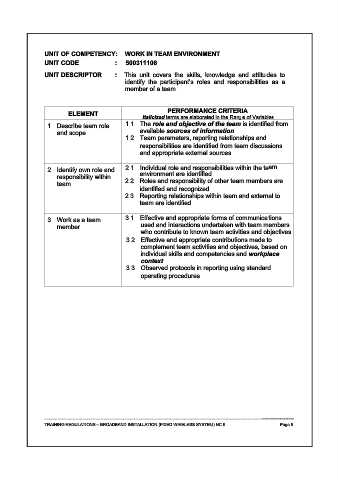 UNIT OF COMPETENCY: WORK IN TEAM ENVIRONMENT