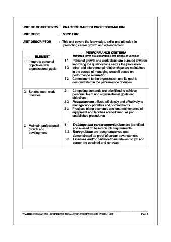 UNIT OF COMPETENCY: PRACTICE CAREER PROFESSIONALISM