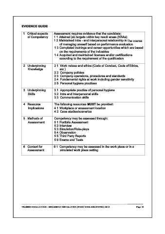 6. Context for 6.1 Competency may be assessed in the work place or in a