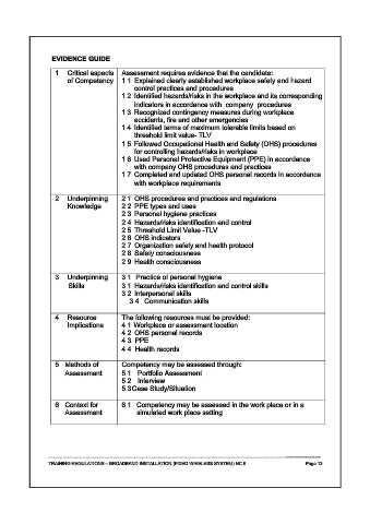 of Competency 1.1 Explained clearly established workplace safety and hazard