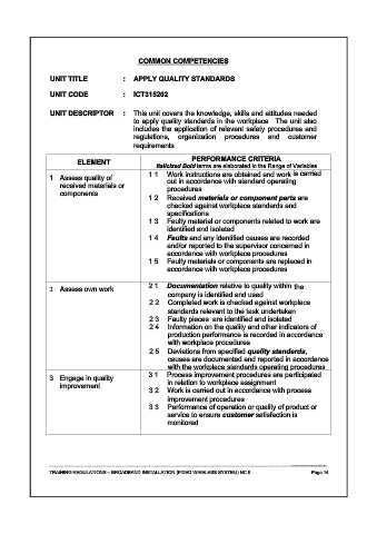 UNIT TITLE : APPLY QUALITY STANDARDS