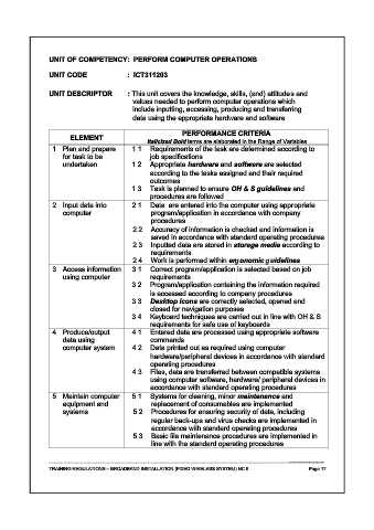 UNIT OF COMPETENCY: PERFORM COMPUTER OPERATIONS