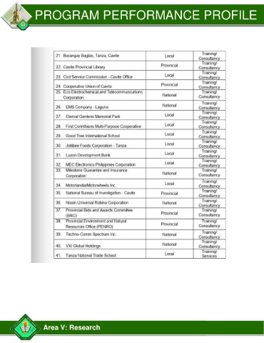 PROGRAM PERFORMANCE PROFILE Area V: Research