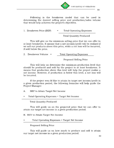 1. Breakeven Price (BEP) = Total Operating Expenses