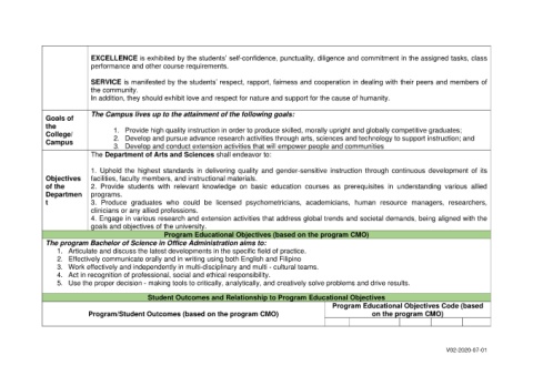 Program/Student Outcomes (based on the program CMO) on the program CMO)