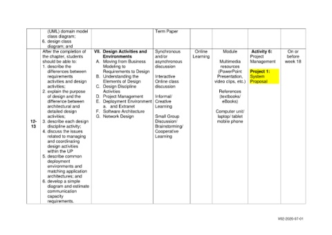 After the completion of VII. Design Activities and Synchronous Online Module Activity 6: On or