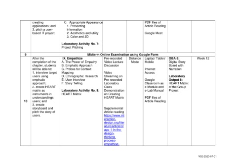 After the IX. Empathize Pre-recorded Distance Laptop/ Tablet/ OBA 8: Week 12