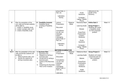 10-11 After the completion of the unit, V. Business Plan Lecture Distance Reference Book Group Project 2: Week 12