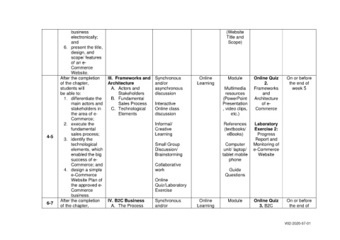 After the completion IV. B2C Business Synchronous Online Module Online Quiz On or before