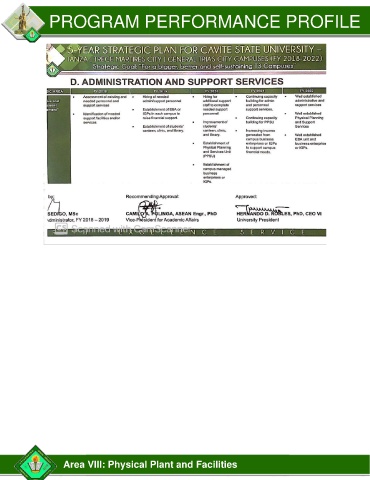 PROGRAM PERFORMANCE PROFILE Area VIII: Physical Plant and Facilities