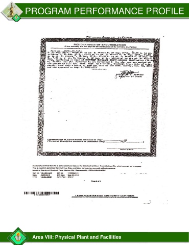 PROGRAM PERFORMANCE PROFILE Area VIII: Physical Plant and Facilities