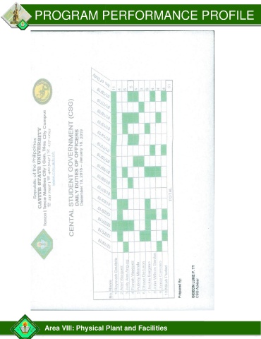 PROGRAM PERFORMANCE PROFILE Area VIII: Physical Plant and Facilities