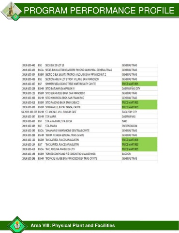 PROGRAM PERFORMANCE PROFILE Area VIII: Physical Plant and Facilities