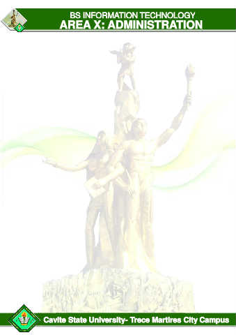 BS INFORMATION TECHNOLOGY AREA X: ADMINISTRATION Cavite State University- Trece Martires City Campus