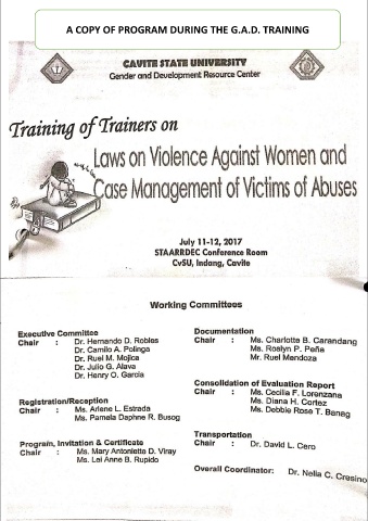 A COPY OF PROGRAM DURING THE G.A.D. TRAINING