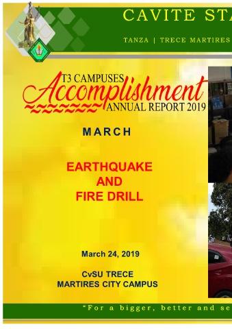 T Y T I S R E V I N U E T A TR I A S C I TY C A M P U S E S C I TY | G E NE R A L S M A R TI R E S E T I | TR E CE V A TA NZ A C H C EARTHQUAKE AND March 24, 2019 R FIRE DRILL CvSU TRECE MARTIRES CITY CAMPUS A M