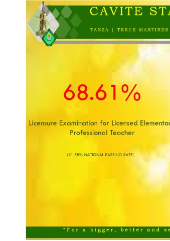 A TA N Z A 68.61% Licensure Examination for Licensed Elementary Professional Teacher (21.58% NATIONAL PASSING RATE)