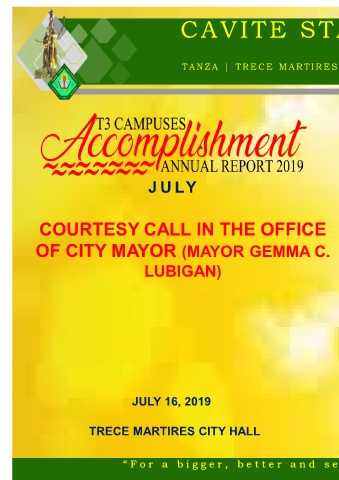 T Y T I S R E V I N U E T A TR I A S C I TY C A M P U S E S CI TY | G E NE R A L S M A R TI R E S E YOR GEMMA C. T I | TR E CE V A TA NZ A C LY COURTESY CALL IN THE OFFICE LUBIGAN) U YOR (MA JULY 16, 2019 TRECE MARTIRES CITY HALL J OF CITY MA