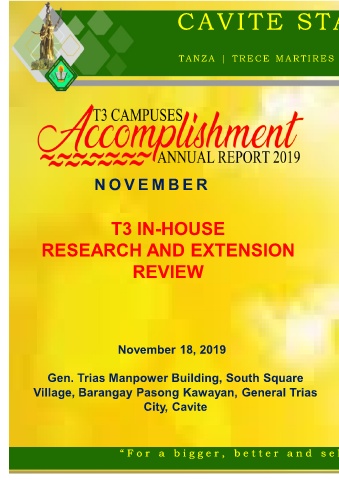 B T3 IN-HOUSE RESEARCH AND EXTENSION REVIEW November 18, 2019 Gen. Trias Manpower Building, South Square Village, Barangay Pasong Kawayan, General Trias City, Cavite