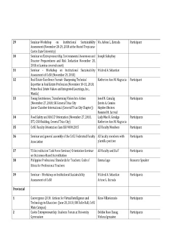 39 Seminar – Workshop on Institutional Sustainability Mildred A. Sebastian Participants