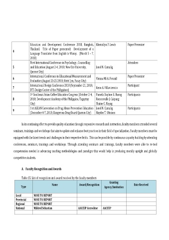 conferences, seminars, trainings and workshops. Through attending seminars and trainings, faculty members were able to re-tool
