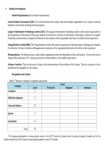 Central Student Government (CSG). The Central Student Government, is the main student organization in the Campus, leads the