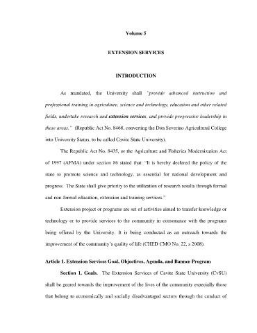 Section 1. Goals. The Extension Services of Cavite State University (CvSU)