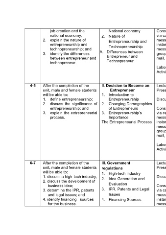 technopreneurship; and messaging, Handouts) contrast their