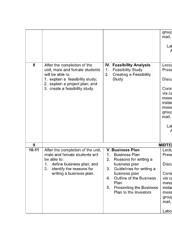 10-11 After the completion of the unit, V. Business Plan Lecture Distance Reference Book Group Project 2: Week 12