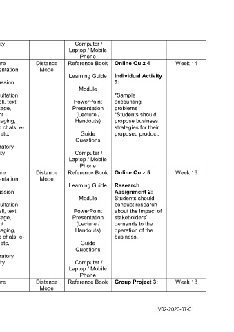 12-13 After the completion of the unit, VI. Entrepreneurial Lecture Distance Reference Book Online Quiz 4 Week 14