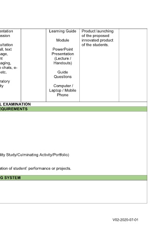 *All exams must follow a Table of Specifications (TOS) and Rubrics for evaluation of student’ performance or projects.