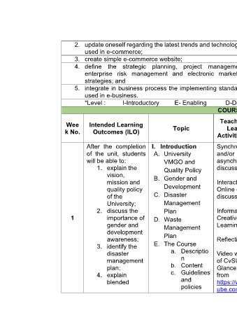 k No. Outcomes (ILO) Topic Learning Delivery Needed Assessment of Output