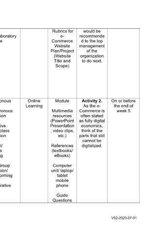 After the completion III. Frameworks Synchronous Online Module Activity 2. On or before