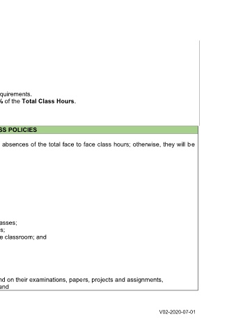 Students are not allowed to have 20% or more unexcused absences of the total face to face class hours; otherwise, they will be