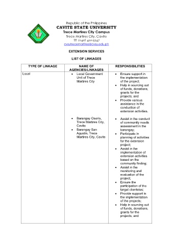 TYPE OF LINKAGE NAME OF RESPONSIBILITIES