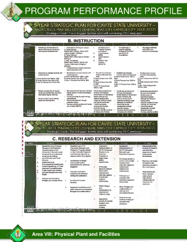 PROGRAM PERFORMANCE PROFILE Area VIII: Physical Plant and Facilities