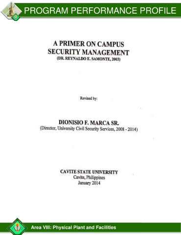 PROGRAM PERFORMANCE PROFILE Area VIII: Physical Plant and Facilities