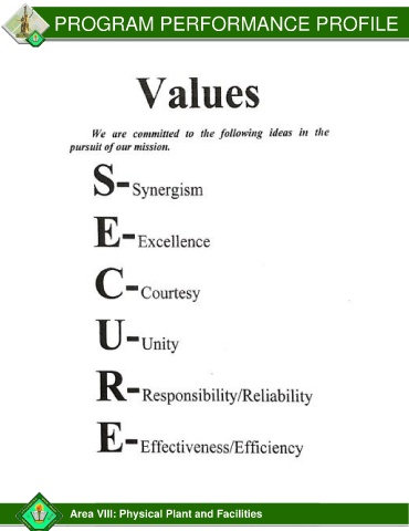 PROGRAM PERFORMANCE PROFILE Area VIII: Physical Plant and Facilities