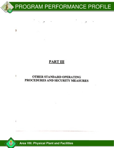 PROGRAM PERFORMANCE PROFILE Area VIII: Physical Plant and Facilities